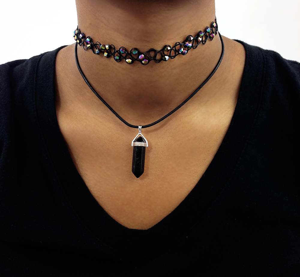 This is a choker/leather pendant necklace combo. This beautiful piece will not only give you a bold look but also help to reject negative vibes. Black Obsidian is known for its cleansing properties. Made of volcanic shards this piece will not only assist you in grounding but may also protect you from anxiety attacks and overwhelming feelings. Grab yours today :)